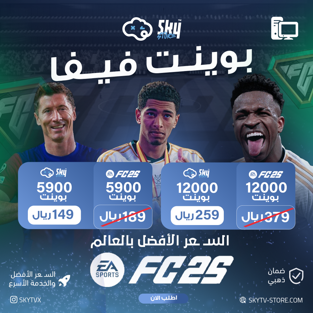 الكل يطمح يبني تشكيلة لا تقهر بفيفا بس السوال هو هل في منصة امنة اكثر من سكاي؟ الجواب هو لا, سكاي يوفر ضمــان ذهبي يحميك و فوقها موفرين ارخص ســعر بالعالم بطريقة امنة خالية من المشاكل ازيدك من الشعر بيت؟ الخدمة فورية و التنفيذ بسرعة البرق 🤯⚡