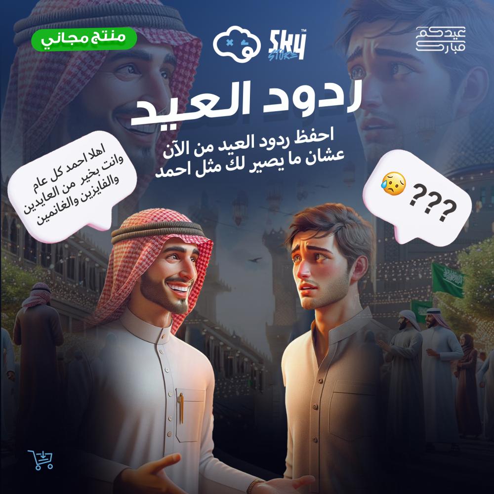 مو مشكلة سكاي وفر لك ردود العيد كاملة مجانًا .. كل الردود موجود احفظها بكل سهولة علشان تقدر ترد على عمك إذا عيّد عليك😂.